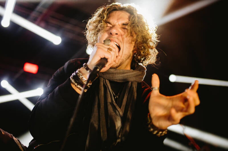 Continuando con “Can’t Win” convertido ya en todo un himno, llega el momento de presentar un nuevo tema “Eyes Closed”. Los dos temas son muy bien recibidos por el público que los corea a la vez que la banda. En este punto, Velvet Chains fue de menos a más y hasta el infinito, interactuando con los asistentes que les fueron tomando el pulso al momento. Es ahora cuando Ro empieza a presentar a los miembros de la banda sonando “Last Drop”, otro tema que se está convirtiendo en un top, dándole un poco de romanticismo al concierto